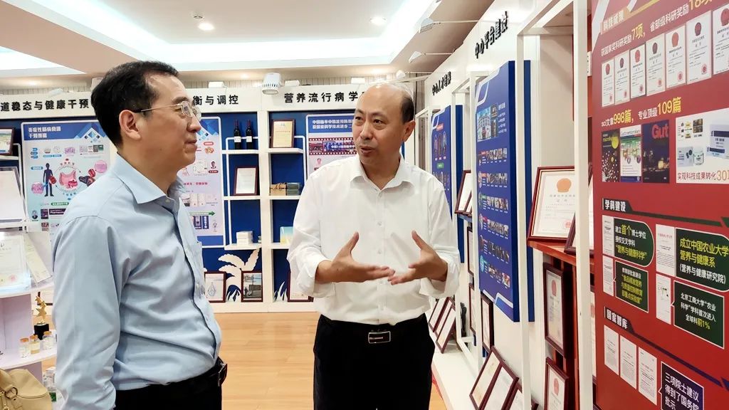 会前,杨震一行还到由中国农业大学和北京工商大学牵头组建的北京食物养分与人类康健高精尖立异中间科研功效展厅、精准养分与康健工程平台、肠道康健平台、养分组学平台、风行病学与人体评估平台考查观光。