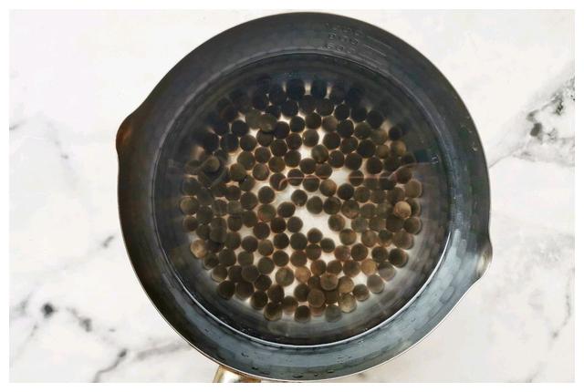 五、然后换成小奶锅,小奶锅内里倒入适当的水,烧开了今后再把珍珠下进去,煮到浮起来浮起来今后捞出来过凉水。