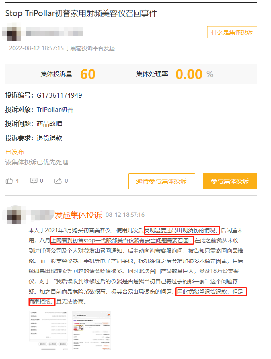 8月黑猫投诉日用电器领域红黑榜——初普美容仪现安全隐患不退款