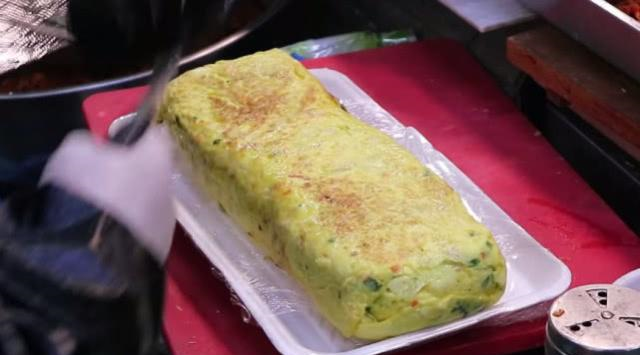 先倒一点,煎到半凝集后推到一边,然后继续倒一点,继续推到一边,反复几回后,再用铲子压成方形的,煎到两面金黄后便可以铲出来了,切成小块,蘸上酱料,味道超等好吃,你吃过吗?年后都长重了吗?